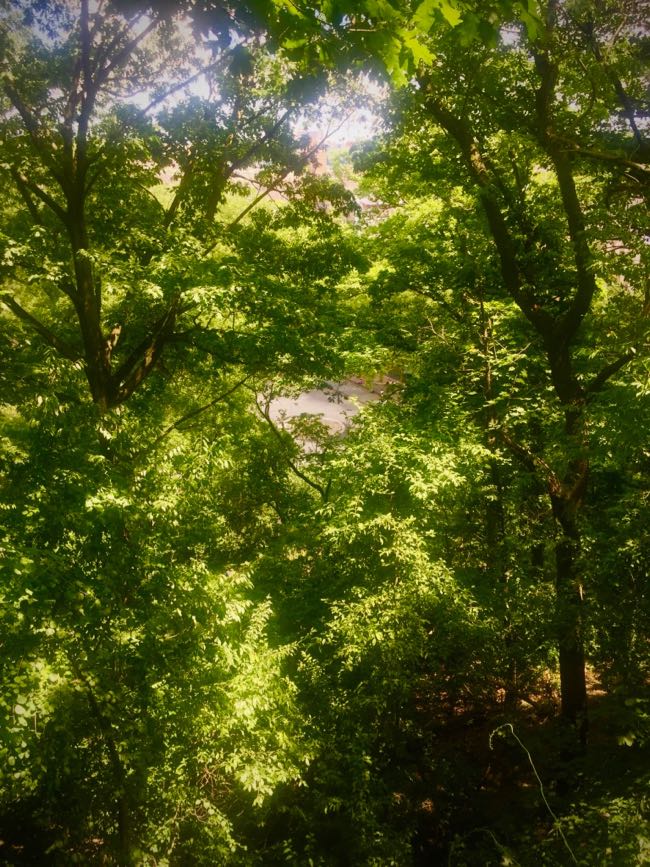 The parks could not be more different. Inwood is raw earth. Rocks and dirt and grass and enormously tall trees. There are some picnic areas, some playgrounds and courts, some fields, but I stay mostly on the trails, in the woods. On early summer mornings there are spots where you hear nothing but birds singing. If you see anyone, it’s probably a birder.